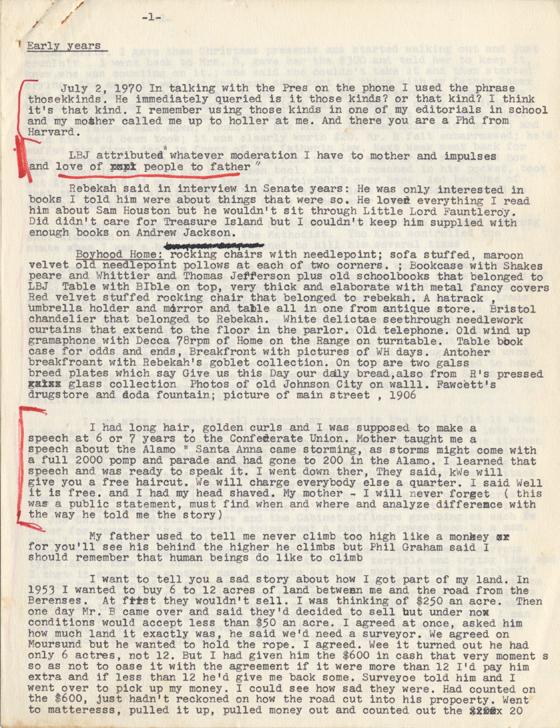 Doris Kearns notes from Lyndon Johnson and the American Dream. Doris Kearns Goodwin Papers, courtesy of the Briscoe Center for American History.
