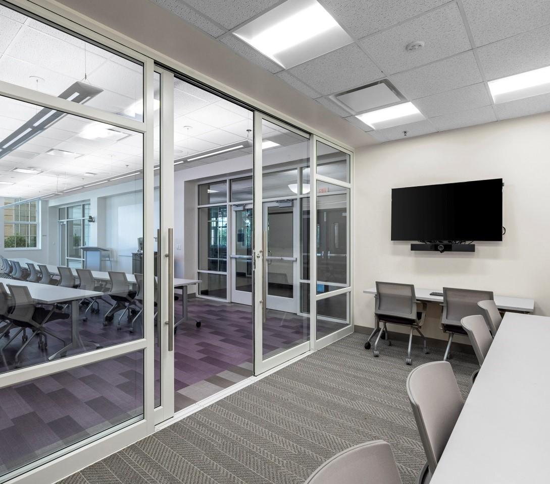 Texas Christian University needed a renovation to their aging Bailey Hall. This interior renovation opens up more space for classrooms by converting smaller study rooms into larger classroom spaces, renovates existing space to update the interior feel, and converts existing classroom space to be used as a SIM Lab for the University.