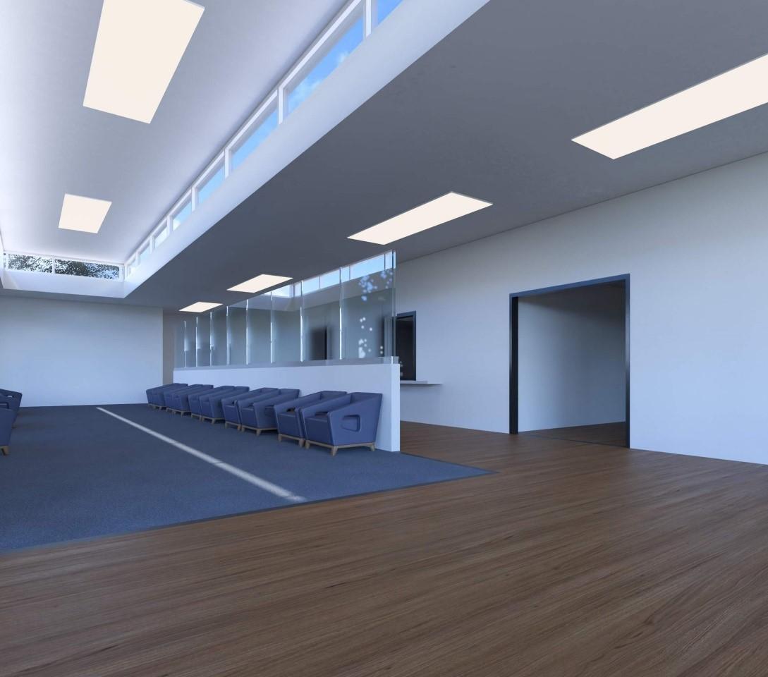Renderings prepared by LBL Architects showcasing the Renovation Expansion to Right-size healthcare service areas. This will improve patient experience through additional privacy and creating an intuitive flow, and increase the organization's reach by creating a new highly-visible welcoming entry addition.