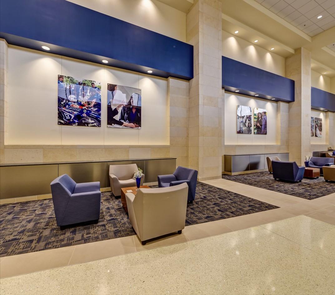 Both interior and exterior finishes were refreshed, giving a crisp college feel to the existing facility.
