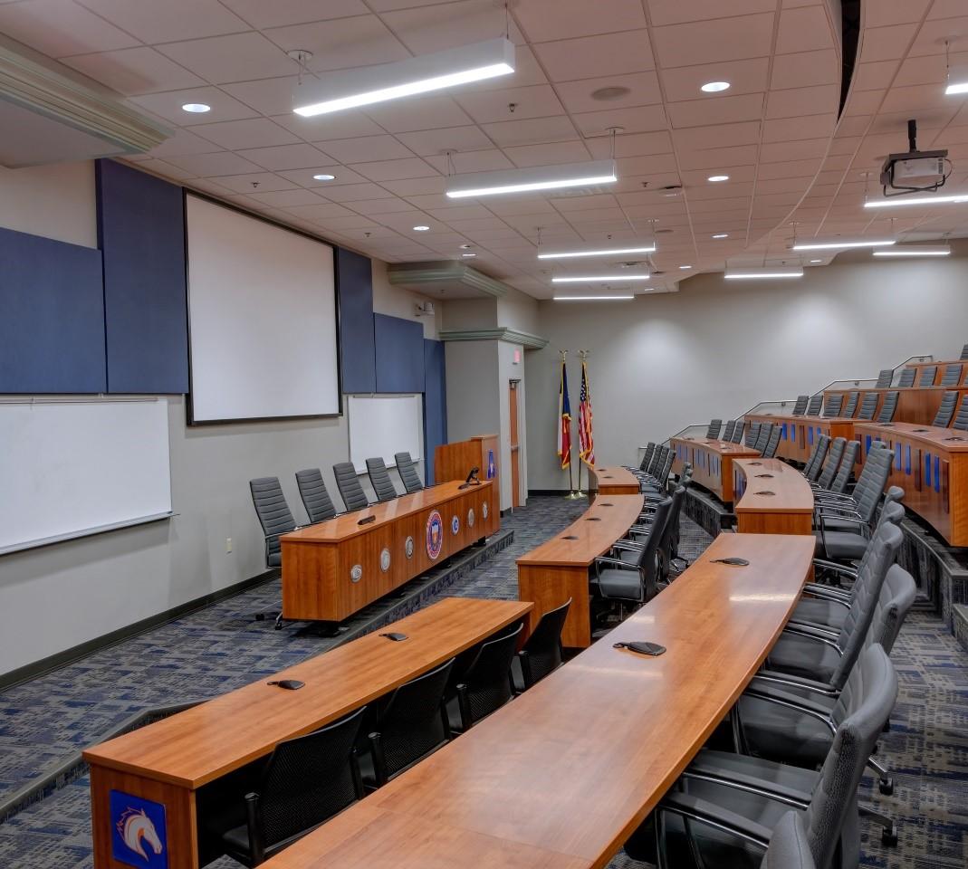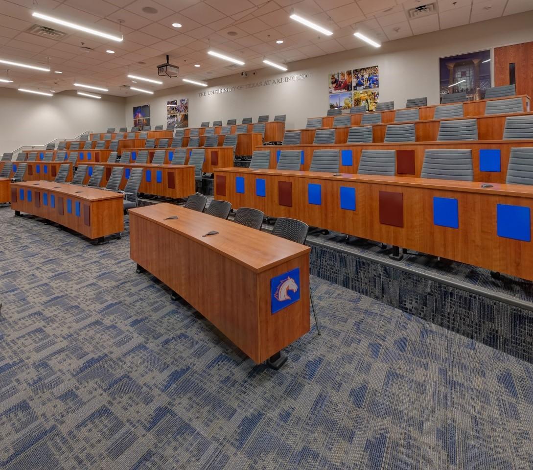 LBL Architects provided design services for the new UTA Student Congress located on the 2nd floor of the University Center. The scope of work included demolition of existing office spaces and conversion to the Student Congress Chambers. This renovation included terracing the floor and ceiling for lecture style terrace seating and tables, providing an AV Booth, a Storage Room, and upgrading floor, ceiling and wall finishes in the surrounding corridors. LBL Architects also provided additional soundproofing to the walls and floors to mitigate sound transference and sound panels to disperse the sound within the room. Additionally, the firm reworked Mechanical and Electrical and provided for new audio/visual equipment to meet the needs of the various student organizations utilizing the Chambers.