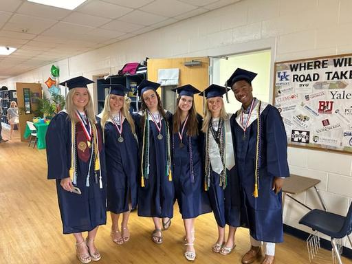 Cumulative GPA is computed using the above quality points from a 5.00. Beginning with grade eight, all subjects taken for high school credit, whether passed or failed, are included in the computation. A minimum of 24 credits is required for graduation. Honors are weighted by .5 and AP and Dual Enrollment classes are weighted by 1 quality point. Grades are recorded on the transcript in May.