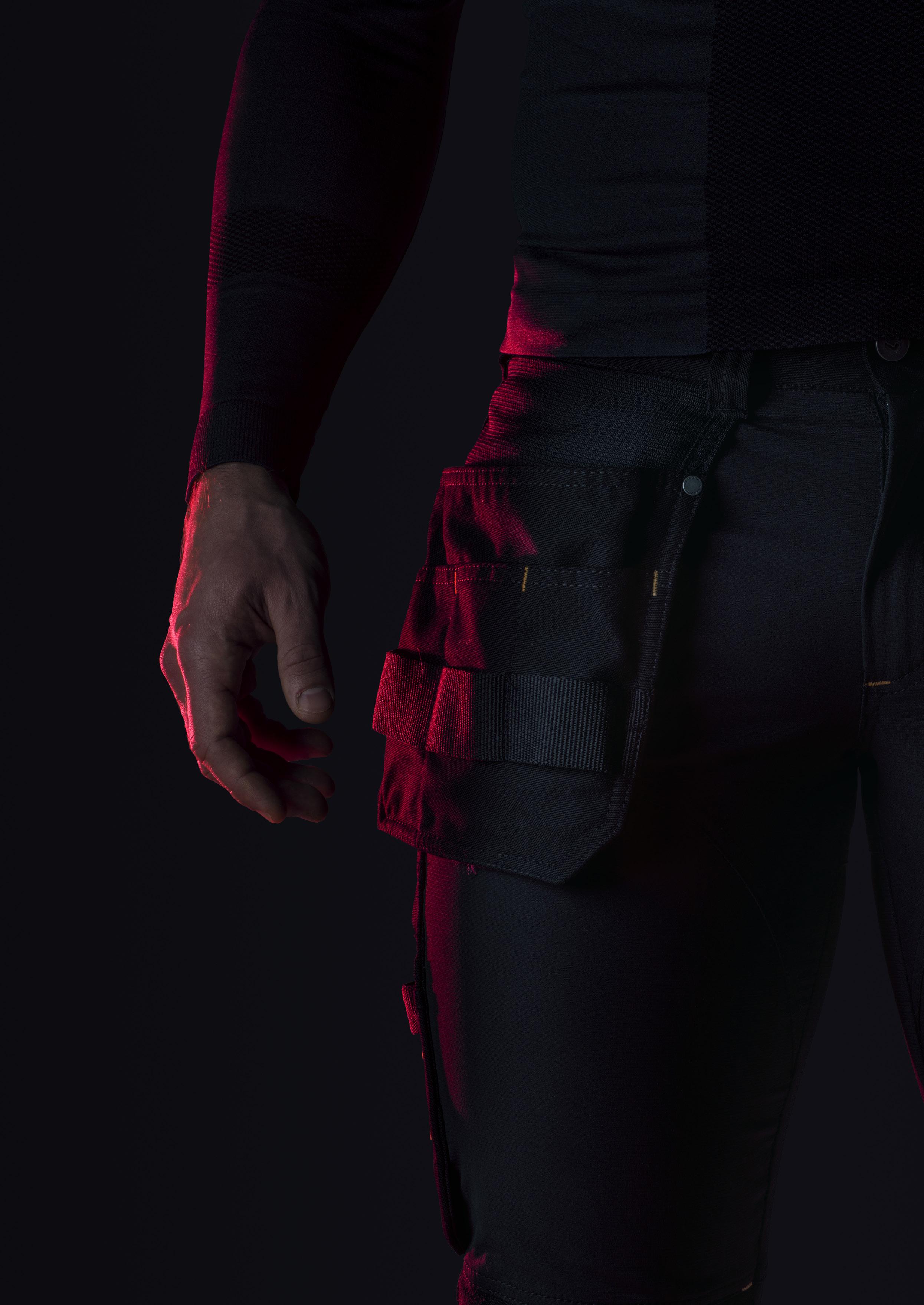 • Mukana tarranauha, jonka avulla voidaan kiinnittää myös housuihin, joissa ei ole työkalukiinnikettä.