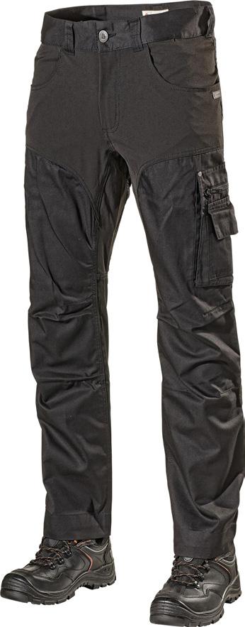 Kevyet ja täysin joustavat huoltosektorin housut/ulkoiluhousut. Kulutuskestävyyttä lisääviä Cordura-joustovyöhykkeitä takaosassa, haarakappaleessa, reisitaskuissa, polvien takana ja lahkeensuissa. Housuissa on moderni muotoilu ja vartalonmyötäinen istuvuus. Ne on suunniteltu tarjoamaan parhaat edellytykset käyttömukavuudelle koko työpäivän ajan.