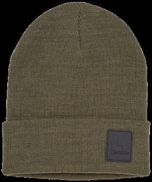 Warme en comfortabele gebreide beanie met rubberen label aan de voorkant.