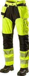 Hi-Vis-sertifisert servicebukse med full stretch. Cordura-stretchpaneler på setet, foran, skrittet, benlommene, på baksiden av kneet og benendene gir ekstra slitestyrke. Buksen har en moderne design og en kroppsnær passform som er designet for å gi optimal komfort gjennom hele arbeidsdagen.