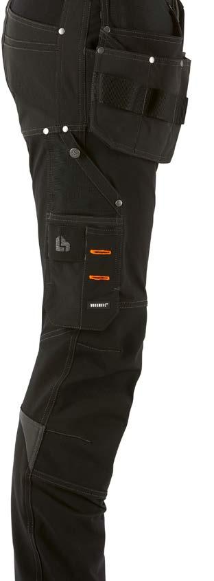• Bedre passform ved hjelp av stretchpaneler samt stretch hovedmaterialet gir en bukse med knebeskyttere som holder seg på plass.