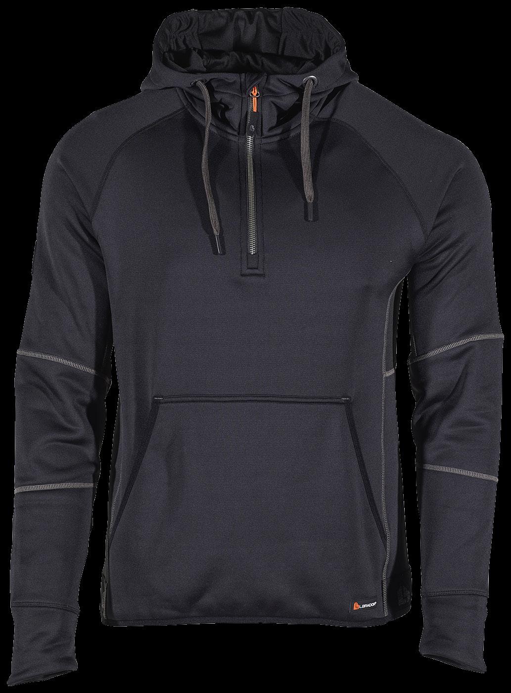 Mjuk, stretchig och värmande huvtröja i modern design med kroppsnära passform. Hellång dragkedja för enkel användning. Fyra fickor med dragkedjestängning för flexibel förvaring av värdesaker.