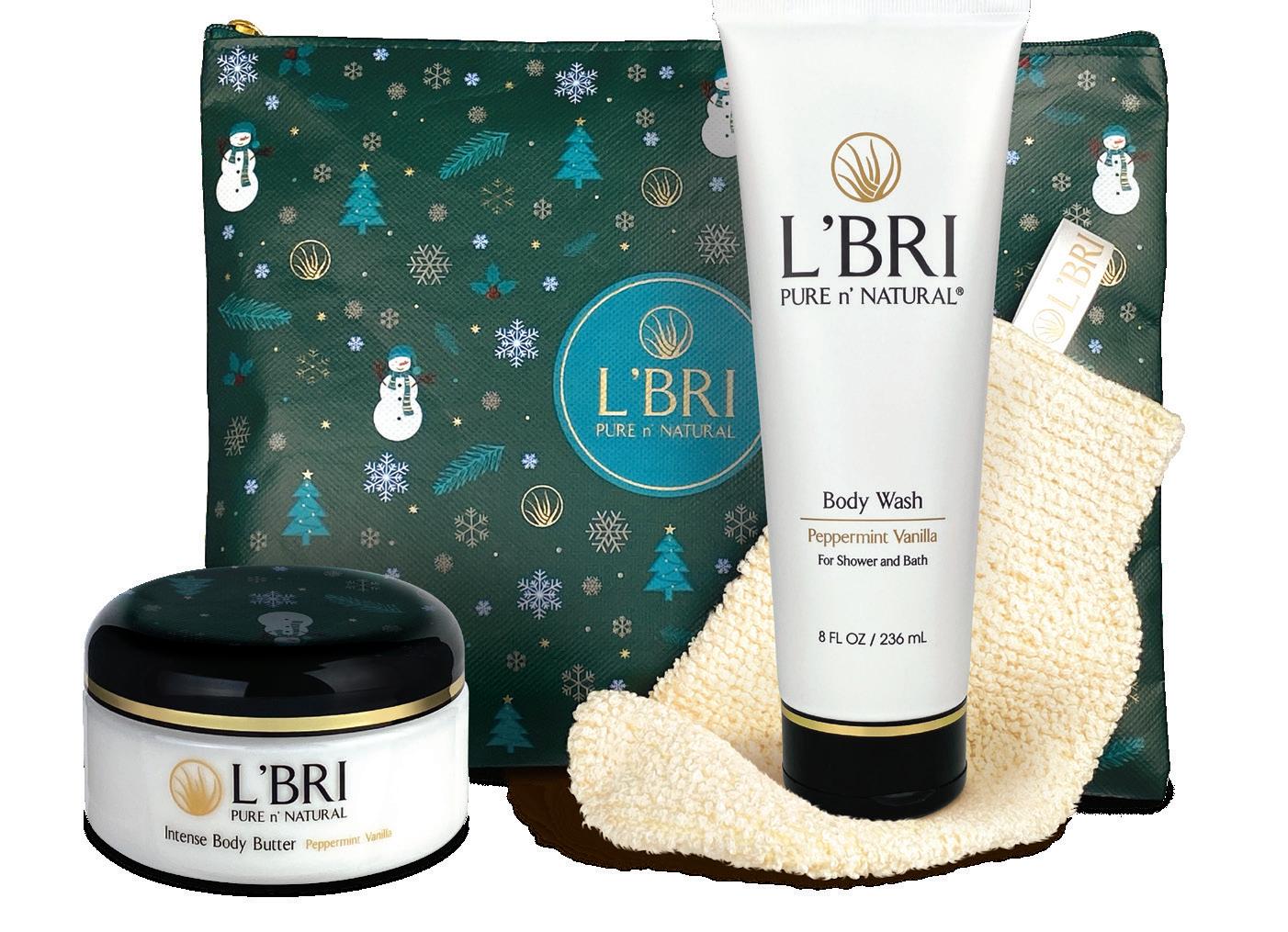 Spirits Bright Pampering Gift Set Indulge in a spa-like experience anytime with this pampering gift set. Apply our refreshing Body Wash with this Bamboo Exfoliating Mitt to ensure clear, healthy, glowing skin. Follow with our Intense Body Butter to restore softness and hydrate skin year-round. Packaged in a reusable holiday-themed zipper bag, this set makes the perfect gift for anyone on your list! $49 | H22-3831 (Citrus Medley) H22-3823 (Cucumber) H22-3825 (Peppermint Vanilla) Holiday Exclusive Scent! Holiday Exclusive Scent! G.