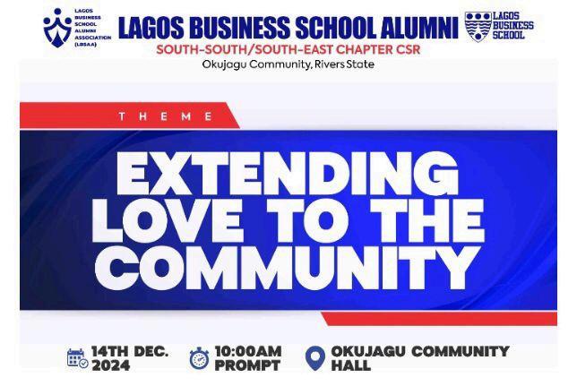 The SS/SE zone of LBSAA organized an outreach in Okujogu community of Rivers State Led by the Zonal President, Enyinnaya Onyegbule OMP10, the zone raised funds towards the purchase of food items for the vulnerable in the community Themed: "Extending love to the community", the outreach aligned with the theme for the 2024 President's Dinner, "Humanity First"