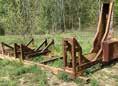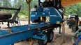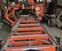 Danckaert Band Resaw - Roughly 10 hours on this machine since it has been rebuilt, it has a 24foot in feed deck 20 foot out feed deck with 44 inch wheels, and all the bells and whistles, its a production machine, with air strain conveyers that go up and down, with airbags, it includes two sets of Mcdonough pressure guides. To p Casting wheel is supported on both sides. This is an extremely accurate machine in ve1y good condition, Cuts 130 feet a minute also has CLT presses. Item ID 13876. Austin x703 S & W 125 Band Mill with Caterpillar generator - Low hours on the mill, electronic computer Set works,1 1/2" or 2" band, 22ft. track Cat 3406 140KW Genset, 12,400 hours ready to run. Item ID 13434. Sam x702 carriage turners, carriage controls, for