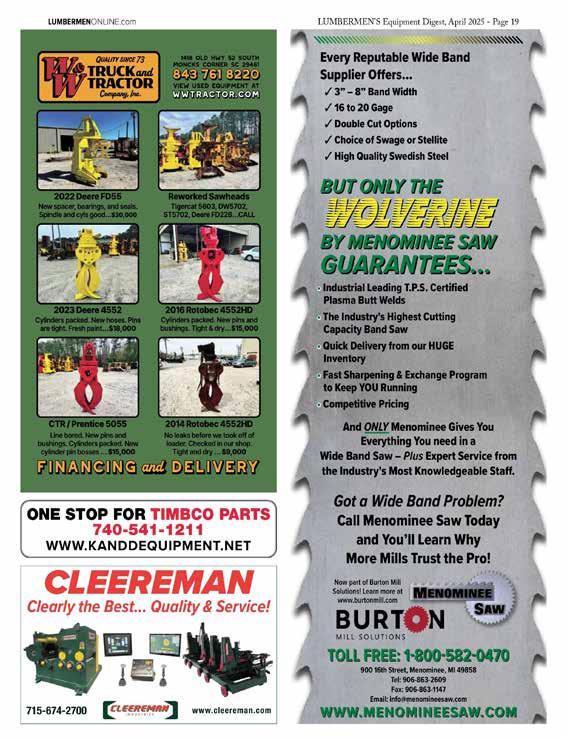 See pictures, prices, and Location of all equipment at www.LumberMB\ISmagazine.com
