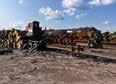 Danckaert Band Resaw - Roughly 10 hours on this machine since it has been rebuilt, it has a 24foot in feed deck 20 foot out feed deck with 44 inch wheels, and all the bells and whistles, its a production machine, with air strain conveyers that go up and down, with airbags, it includes two sets of Mcdonough pressure guides. To p Casting wheel is supported on both sides. This is an extremely accurate machine in ve1y good condition, Cuts 130 feet a minute also has CLT presses. Item ID 13876. Austin x703 S & W 125 Band Mill with Caterpillar generator - Low hours on the mill, electronic computer Set works,1 1/2" or 2" band, 22ft. track Cat 3406 140KW Genset, 12,400 hours ready to run. Item ID 13434. Sam x702 carriage turners, carriage controls, for