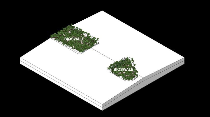 The second intervention in Downtown Jamaica proposes transforming barren medians into bioswales, addressing inadequate maintenance and stormwater flooding. This strategy, focused on major roads, aims to enhance environmental resilience in high-traffic areas near industrial zones, contributing to downtown Jamaica's overall infrastructure.