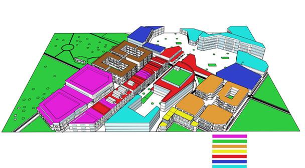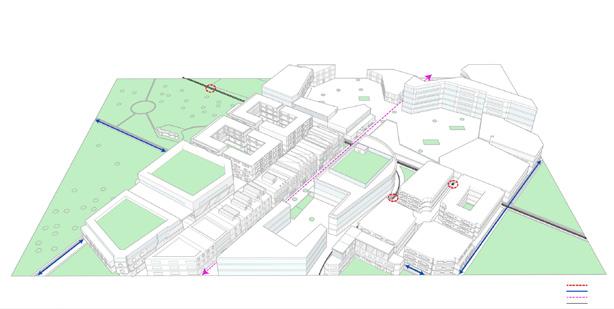 within the site also help to absorb any excess amount of rainwater. Campus The site will contain a diverse range of community centers and services in its interconnected public spaces in order to empower the greater community as well educate them on the