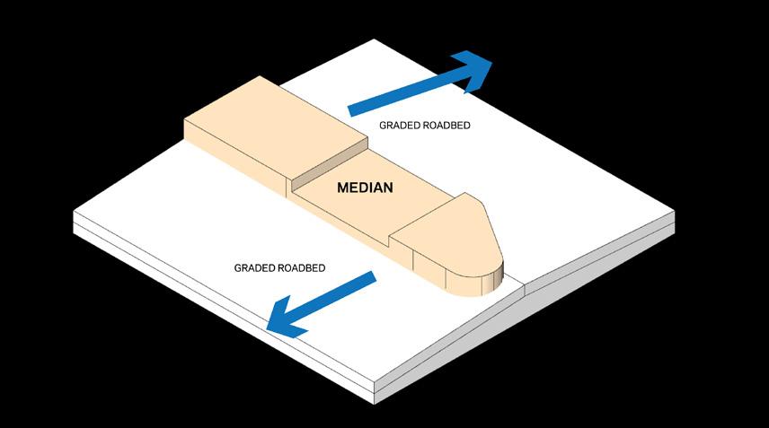 The second intervention involves the transformation of existing medians into bioswales. Downtown Jamaica, being a transit-oriented district, features wide roads with multiple lanes, leading to the presence of medians in the center of these vehicular pathways. Observations made during our site visit revealed that these medians are primarily composed of concrete or asphalt and lack any form of planting. Furthermore, they suffer from inadequate maintenance and are often littered with trash.