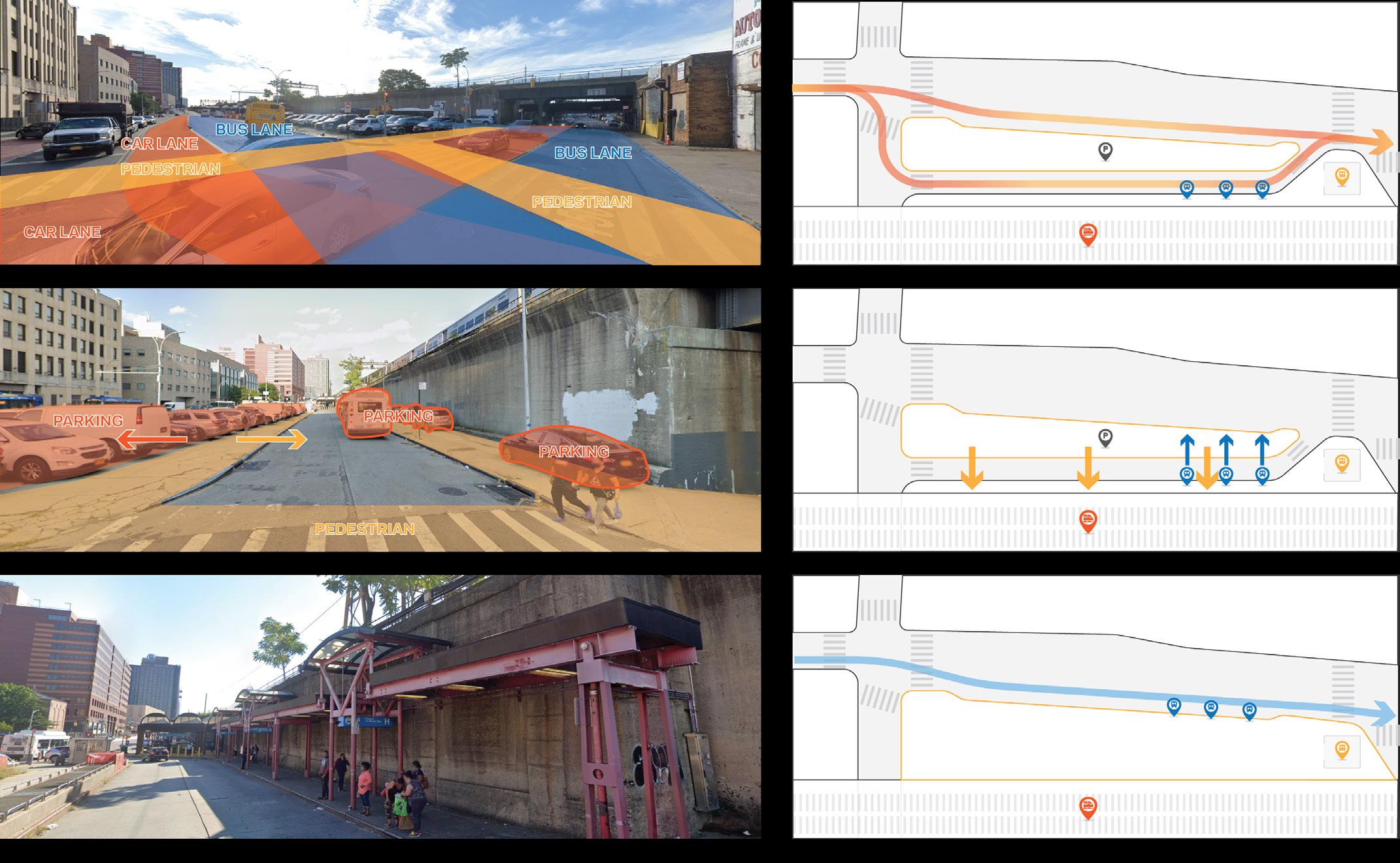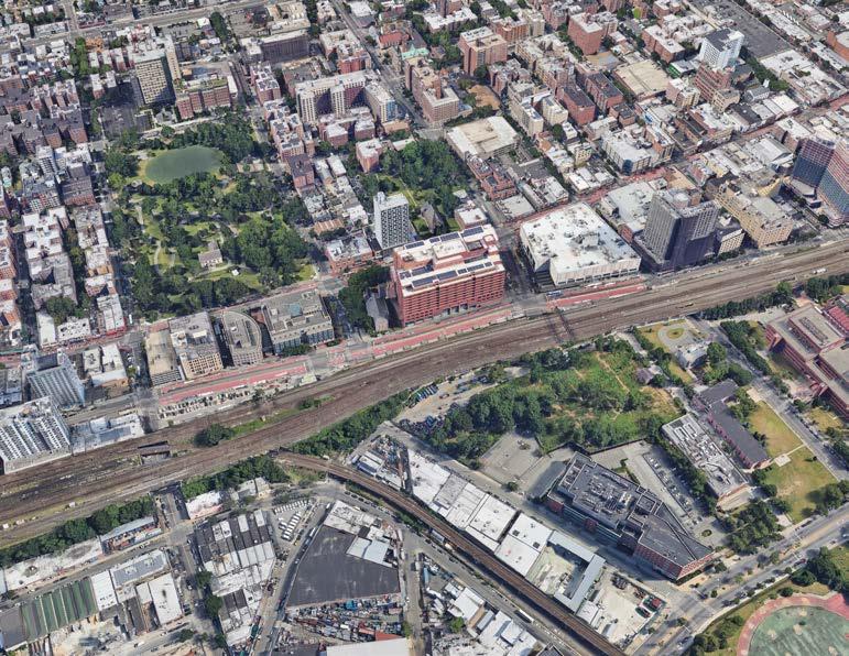 Jamaica Station serves as a central hub for the community, yet the presence of railroad tracks acts as a dividing boundary. On one side, there's a low-density residential area near Jamaica Avenue's commercial center, anchored by Rufus King Park and government buildings. On the opposite side of the tracks lies an industrial neighborhood with a neighboring residential area. This clear division poses challenges for residents to move between these areas. The industrial zone lacks public spaces or activities, except for a few churches. Both sides face stormwater issues due to an overworked sewer system, inadequate trash collection, and irregular street paving. This complex scenario requires targeted interventions tailored to each issue and site.