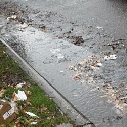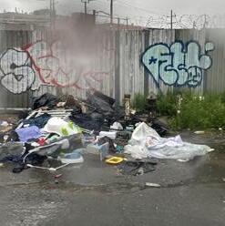 In order to gain an understanding of on-theground site conditions, a site visit was conducted in mid-October 2023 amidst rainy weather. This inclement weather provided a clear view of prevalent stormwater issues, shedding light on potential underlying causes. Analyzing the photographic data collected revealed a concerning prevalence of trash and illegal dumping, notably concentrated in the industrial and residential zones. The industrial area, in particular, showcased severe flooding issues and exhibited a higher incidence of graffiti and vandalism, aligning with community feedback regarding safety concerns within this zone expressed by residents. All in all, the photographic data collected aligned with the flood stormwater maps the team developed.