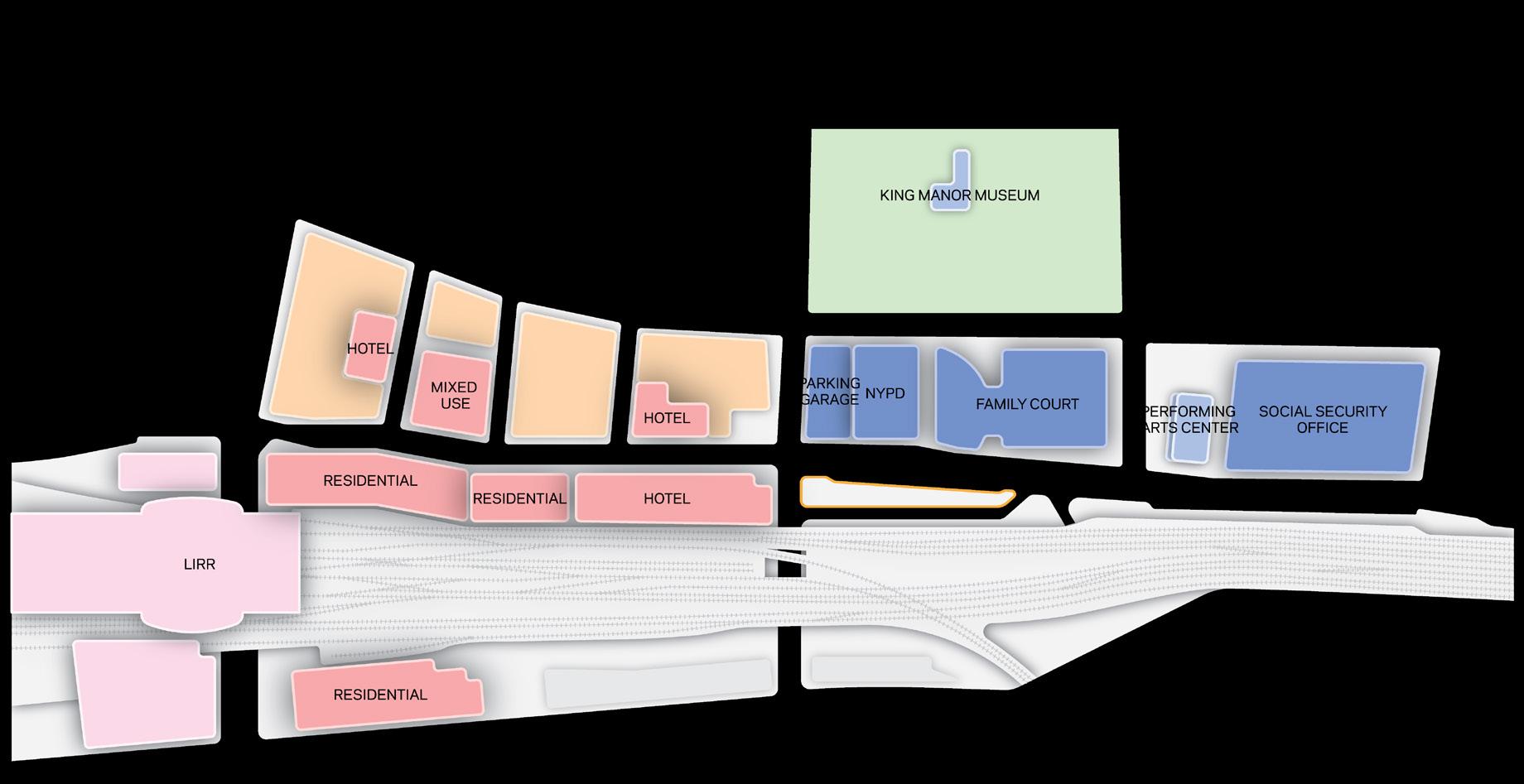 Downtown Jamaica boasts several defining features: firstly, its extensive railway connectivity provides residents easy access to various transportation options, including the Long Island Rail Road (LIRR), three subway lines (E, J, and Z). and the JFK AirTrain. Secondly, the area thrives with a bustling commercial corridor along Jamaica Avenue marked by numerous Black and immigrant owned businesses, alongside a diverse culinary experience within its food court. Lastly, the vicinity surrounding downtown Jamaica hosts a diverse industrial landscape, featuring low-story industrial sites such as steel manufacturing, ready-mix concrete suppliers, auto repair and car wash facilities, and even a poultry farm. The multi-faceted and vibrant identity of Downtown Jamaica sets it as an area that will see an increase in development and economic investment.