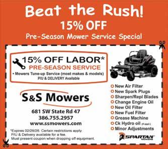 Seamless, soffit/facia, roofing, siding, screen rooms, fencing. Creative Concepts. (386)984-9838 (02/25) HANDYMAN Professional, affordable. Licensed & insured. Free estimates (386)697-1963(3/4) TRENCHING DONE $1. a foot, 75 foot minimum Call Rick (740) 221-8475 or (386) 628-1580 (6/3/26) MODEL TRAINS Collectors looking for model trains. Cash money. (386)984-9189 (3/11)