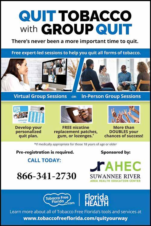SERVING NORTH CENTRAL FLORIDA 66 YEARS 358 NW Main Blvd. Lake City, FL 32055 386-752-8280 ECRWSS PRST. STD U.S. POSTAGE PAID LAKE CITY, FL PERMIT #63 RESIDENTIAL CUSTOMER COVERING NORTH FLORIDA: COLUMBIA ~ SUWANNEE ~ HAMILTON COUNTIES: LAKE CITY • FORT WHITE • LIVE OAK • BRANFORD • WELLBORN • JASPER • WHITE SPRINGS Published Weekly on Wednesdays | Direct-Mailed Weekly Through the United States Postal Service | Racked In High Traffic Areas Hungry Howie’s and its related marks are trademarks of Hungry Howie’s Pizza & Subs, Inc. Use of the trademarks in the State of Florida are under license of HH Pizza, Inc. All Hungry Howie’s stores are independently owned and operated. Prices and partici pation may vary. FLAVOR YOUR CRUST FOR FREE $1499 USE CODE: PZ11 $1599 USE CODE: 3301 LARGE SPECIALTY PIZZA 100% MOZZARELLA CHEESE Price and participation may vary by location, as well as minimum delivery orders & fees. Premium toppings extra Expires in 30 Days. Price and participation may vary by location, as well as minimum delivery orders & fees. Premium toppings extra Expires in 30 Days. Price and participation may vary by location, as well as minimum delivery orders & fees. Premium toppings extra Expires in 30 Days. • Baked Spaghetti with 1 Topping and Howie Bread • Large 1 Topping Pizza (regular or thin crust) • Any Specialty Flatbread • Any No-Dough Bowl™ • Any Regular Salad • 8 Wings with Cajun Bread and a Dipping Sauce • Any Large Oven Baked Sub USE CODE CHOOSEY EACH $899 YOU CHOOSE OVER 550 LOCATIONS NATIONWIDE • HUNGRYHOWIES.COM • WE DELIVER! LARGE PIZZA 1 TOPPING WITH REG. 3 CHEESER BREAD 240524 HH LAKE CITY ADV IFC 6/12/24 LAKE BUTLER 720 EAST MAIN STREET NEXT TO BADCOCK FURNITURE (386) 496-2878 DRIVE-THRU • CARRY-OUT FT WHITE 7788 S.W. US HWY 27 NEXT TO SUBWAY (386) 497-1484 DRIVE-THRU • CARRY-OUT LAKE CITY 857 S.W. MAIN BLVD. IN LAKE CITY PLAZA (386) 755-7050 DELIVERY 2 LARGE 2 TOPPING PIZZAS REG. 3 CHEESER BREAD AND A 2 LITER $2899 Price and participation may vary by location, as well as minimum delivery orders & fees. Premium toppings extra Expires in 30 Days. NEW! TWO DESSERTS TOGETHER, FOR ONE GREAT TASTE! A family-size, oven-baked fudge brownie with layers of chocolate chip cookie. Try it with your next pizza order. $699 A SWEET DEAL HOWIE BROOKIE ™ Price and participation may vary by location, as well as minimum delivery orders & fees. Expires in 30 Days. WEDNESDAY, JUNE 5, 2024 Volume 66 Issue 22 See Page 3 Medicare Experts