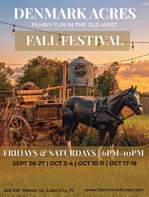 Gem Mining • Hay Rides • Haunted Cemetery • Two Mazes Pioneer Playground • General Store • Food Trucks • Petting Zoo 825 SW Wester Dr., Lake City, FL 32025 www.D enmark a cres .com
