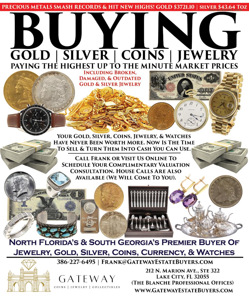 Serving Lake City for 10 yrs! Top dollar paid for gold and silver jewelry, sterling silverware, diamonds, and coins, directly across from Toyota on 90. 386-965-3470. (C 9/24/25)