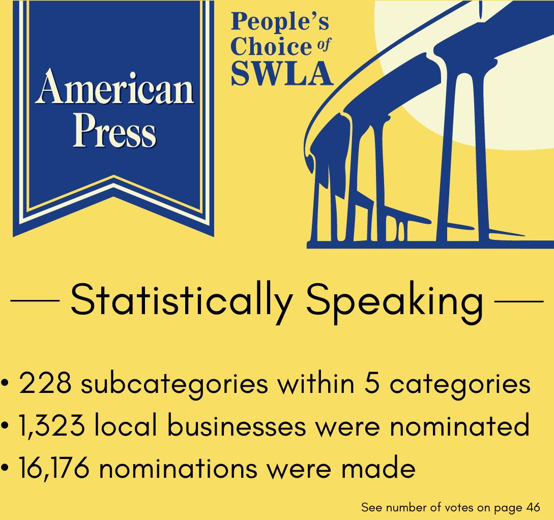 Tia Juanita’s Fish Camp took 12 total categories in this year’s People’s Choice awards, winning best beer selection, brunch, casual dining, chef, cocktail, date night, girl’s night out, gumbo, kid’s meal, margarita, Mexican restaurant and server. No restaurant has ever taken that many categories.