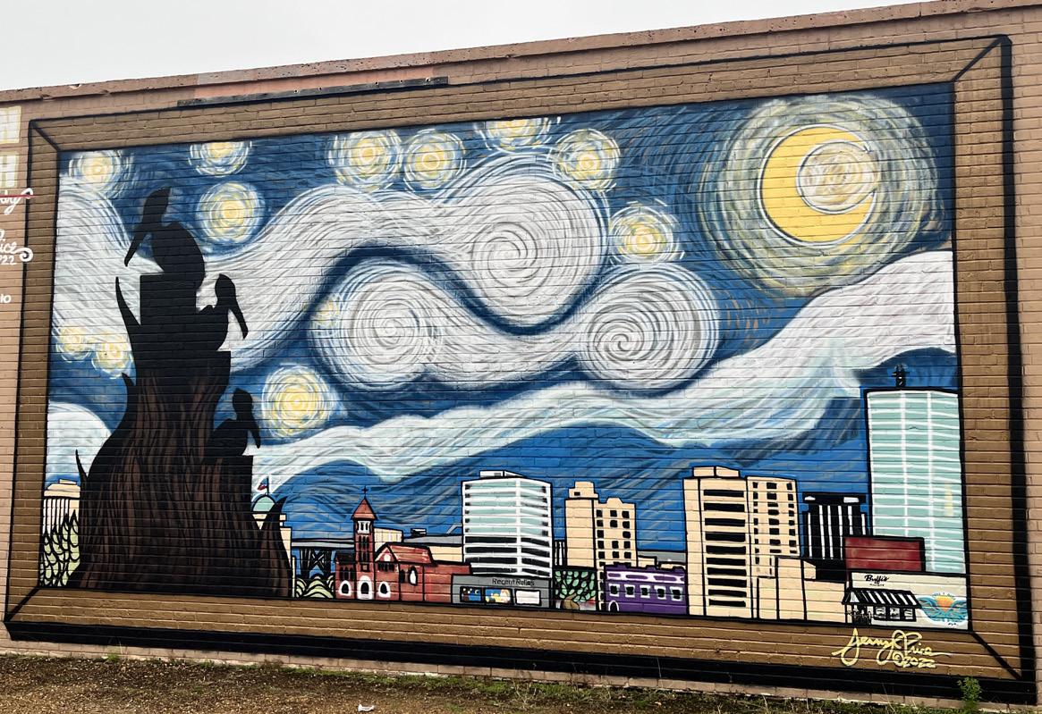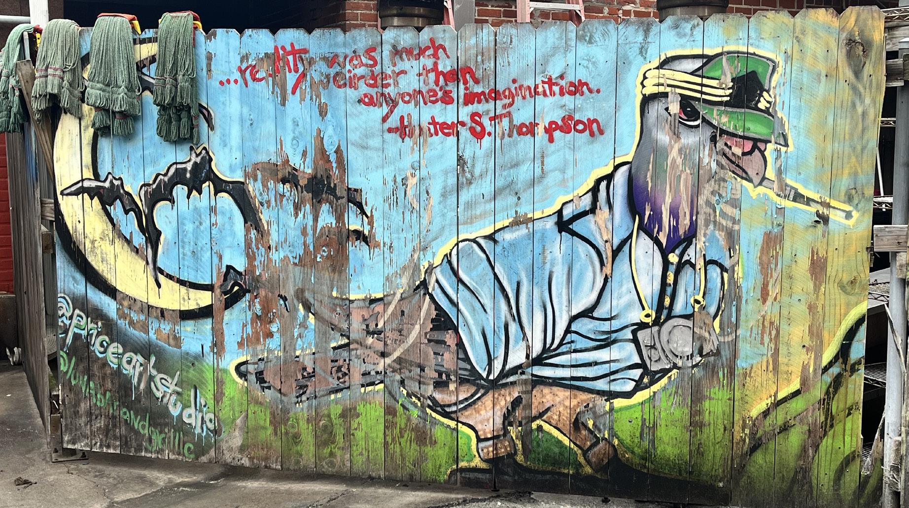 Many have seen the mural painted on the outdoor seating area of Luna’s Downtown, but there’s also an artistic creation in the back of the restaurant near the employee entrance. Artist Price includes a quote attributed to Hunter S. Thompson — author of “Fear and Loathing in Las Vegas” and “Hell’s Angels” — “... reality was much weirder than anyone’s imagination,” in his design on the wooden fence posts.