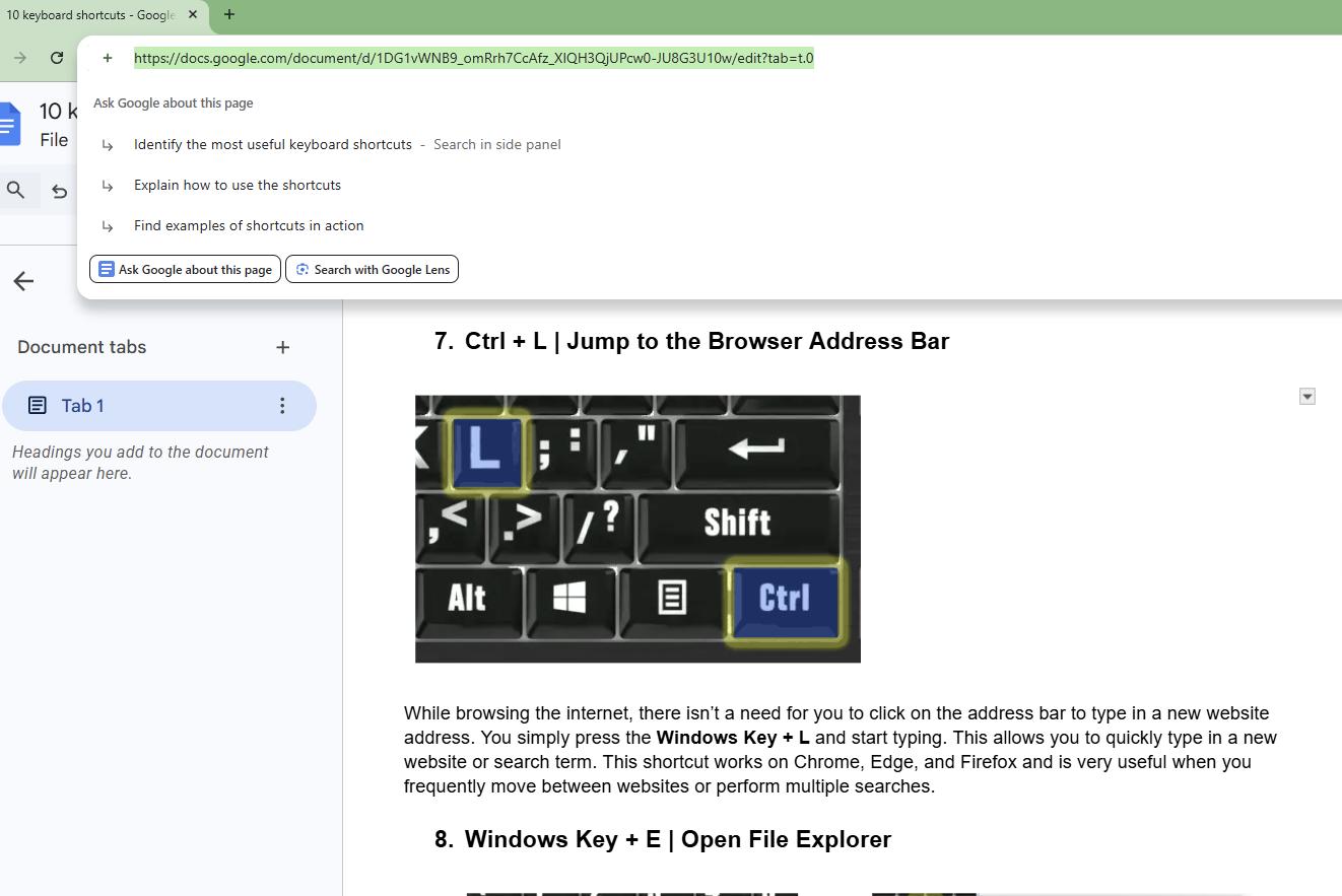 While browsing the internet, there isn’t a need for you to click on the address bar to type in a new website address. You simply press the Ctrl + L and start typing. This allows you to quickly type in a new website or search term. This shortcut works on Chrome, Edge, and Firefox and is very useful when you frequently move between websites or perform multiple searches.