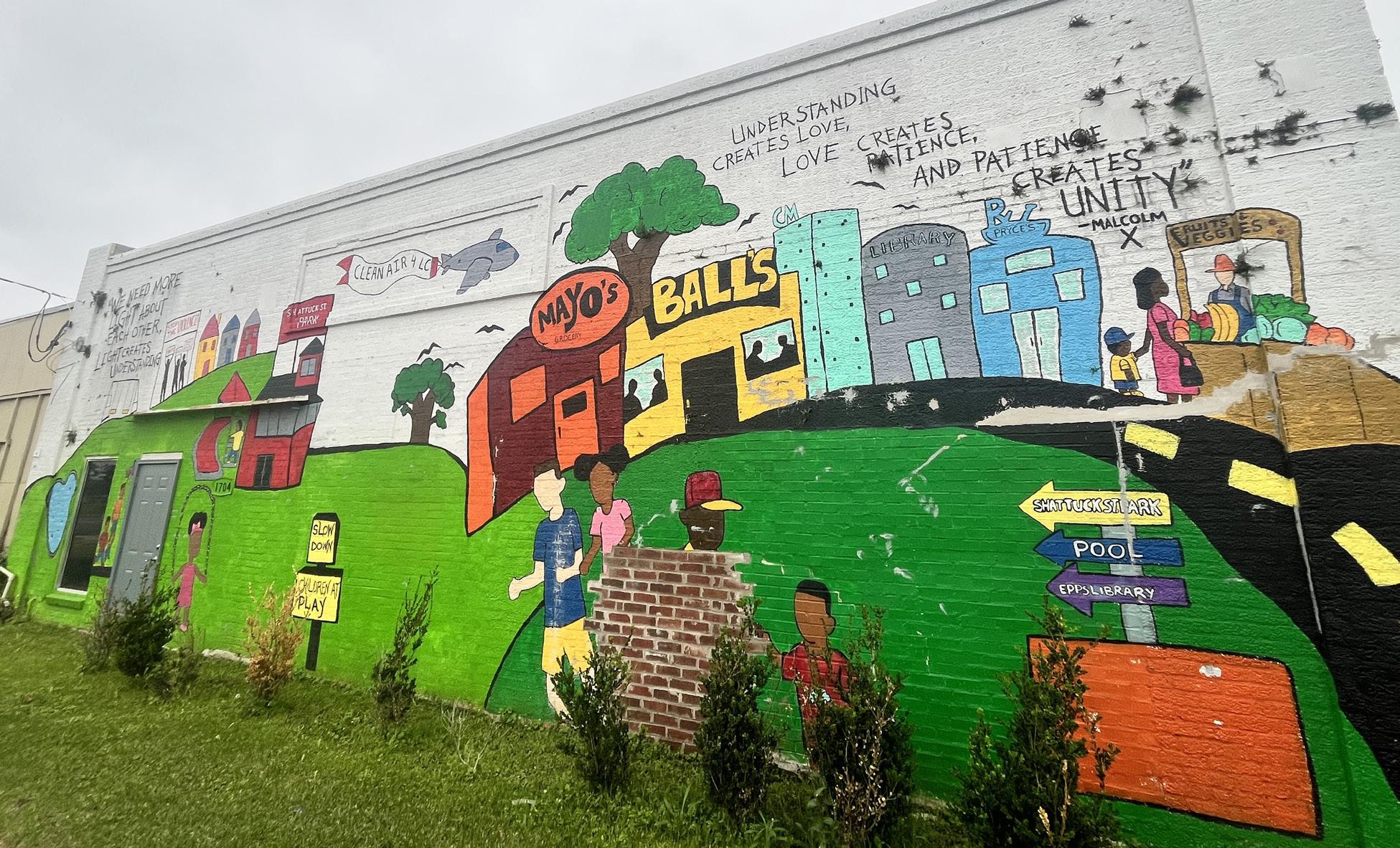 Derrick Thornton and Shannon DeJean commissioned this painting at 1707 Broad St. to showcase businesses lost in recent years — and inspire community members to bring new business to the area.