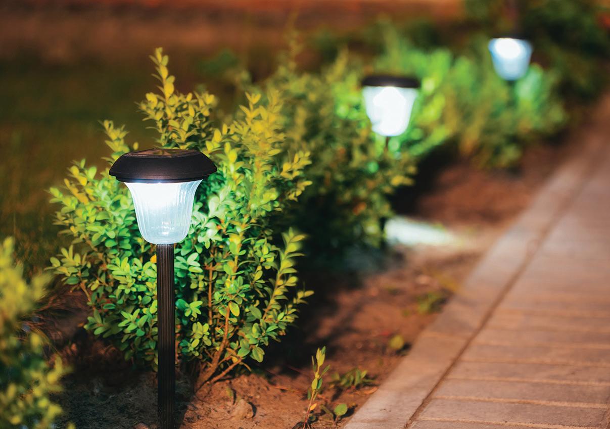 • Path lights: Similar to step lights, path lights typically are installed as a safety feature. But path lights still boast aesthetic appeal, as they help to light up walkways and driveways without providing a burst of light that can feel overwhelming for residents and visitors. Path lights come in a variety of styles and sizes, so homeowners can experiment with their options to find the one that best suits their needs.
