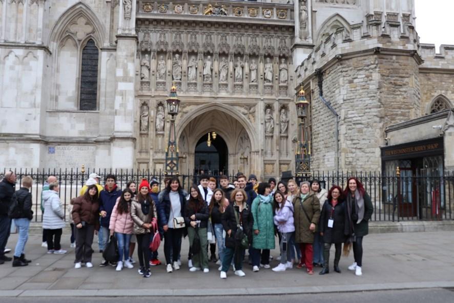 From the 20th to the 24th of February, within the scope of the Erasmus + project, a group of 19 students (delegates and sub-delegates from the 7th to the 9th grade) and 7 teachers from the AEMD carried out a school trip to London. On the 20th, after a few hours of travel, we arrived in London in time to eat and walk around the hotel. The 21st was a busy day. We visited Westminster Cathedral and Westminster Abbey, the Houses of Parliament, Big Ben, the Tower Bridge, the Tower of London, St. Paul's Cathedral, and, last but not least, Covent Garden. On Wednesday, the 22nd, we visited Buckingham Palace, where we watched the Changing of the Guard, which