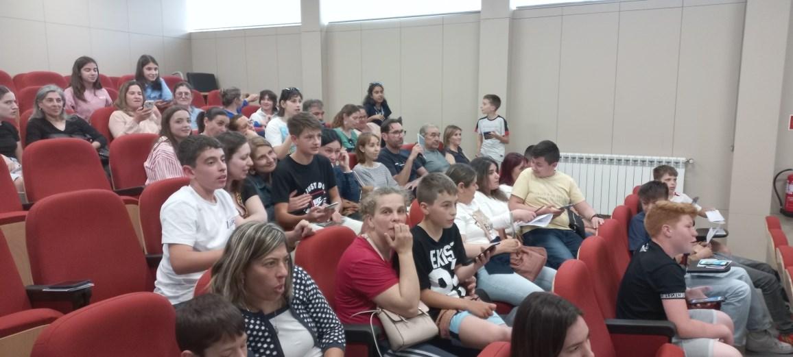 no dia 3 de março de 2023, no auditório da E.B.S. de Miranda do Douro: da parte da tarde, os alunos do 7ºA e 7ºB apresentaram os seus produtos finais às turmas de 5º e 6º anos, aos professores e aos pais/encarregados de educação.