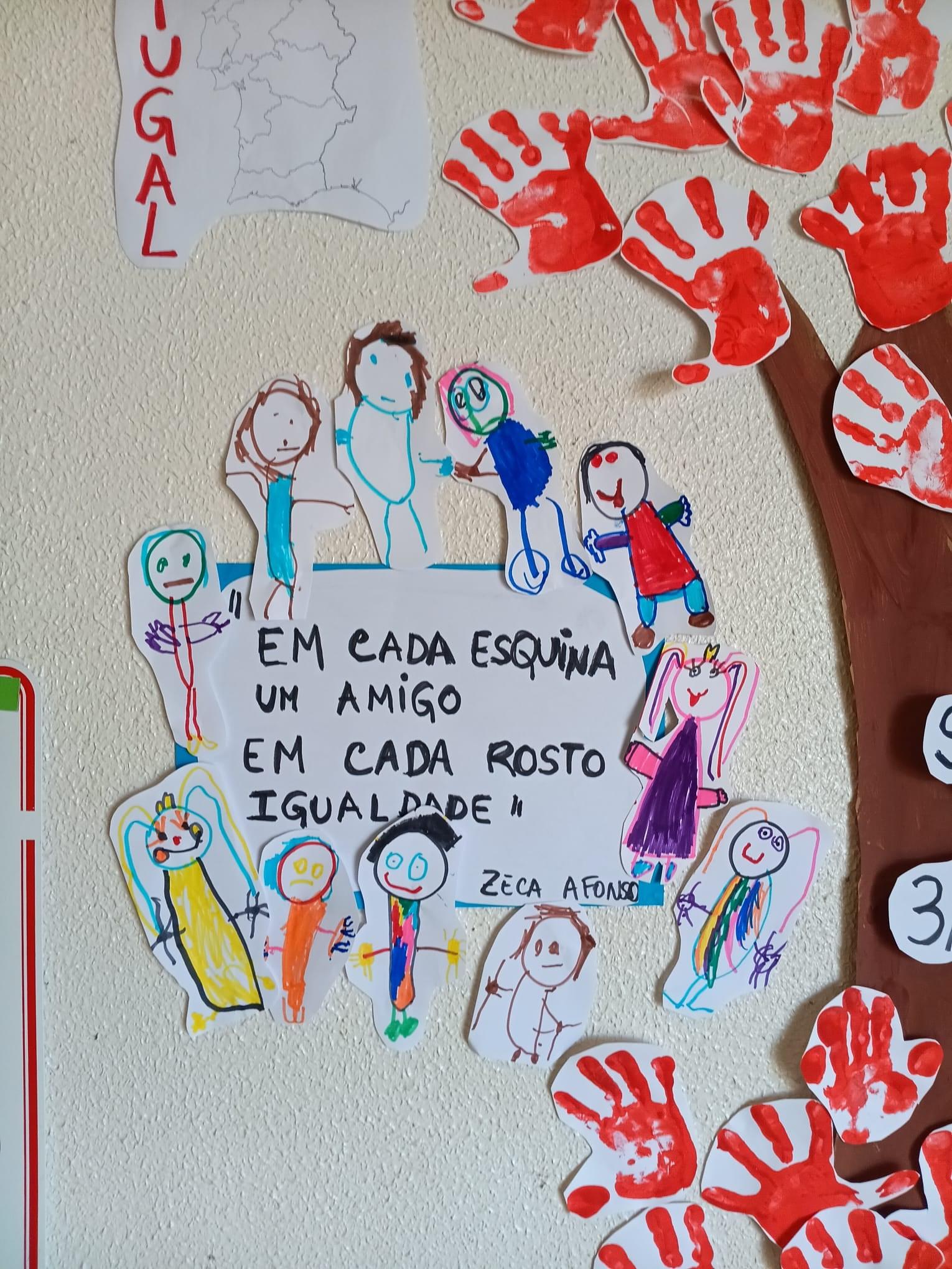 Crianças do Jardim de Infância de Sendim constroem cartaz alusivo aos 50 anos de Abril! Artes