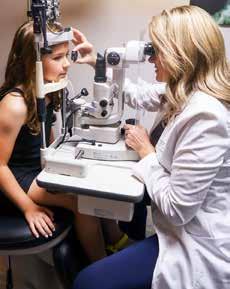 Dr. Jennifer Compton’s daughter, eightyear-old Bridget, helps her demonstrate what a typical eye exam for a child might entail.