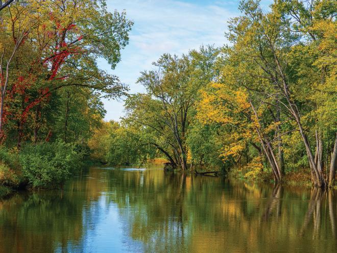 State-endangered birds spotted here include the black tern, blackcrowned night heron, yellow-crowned night heron and Forster’s tern. Four state-threatened species have also been observed: brown creeper, osprey, pied-billed grebe and red-shouldered hawk. Just steps from the bird-rich wetlands, an innovative playground invites children to climb, crawl and explore colorful tunnels, slides, bridges and swings. Two separate areas, one for ages 2 to 5 and another for 5 to 12, offer age-appropriate fun. Ramped sections improve accessibility, while lookout stations and a sand pit connect playtime with the surrounding woods.