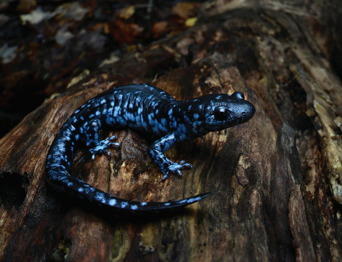 Blue-spotted salamanders hunt for small invertebrates during cool nighttime temperatures.