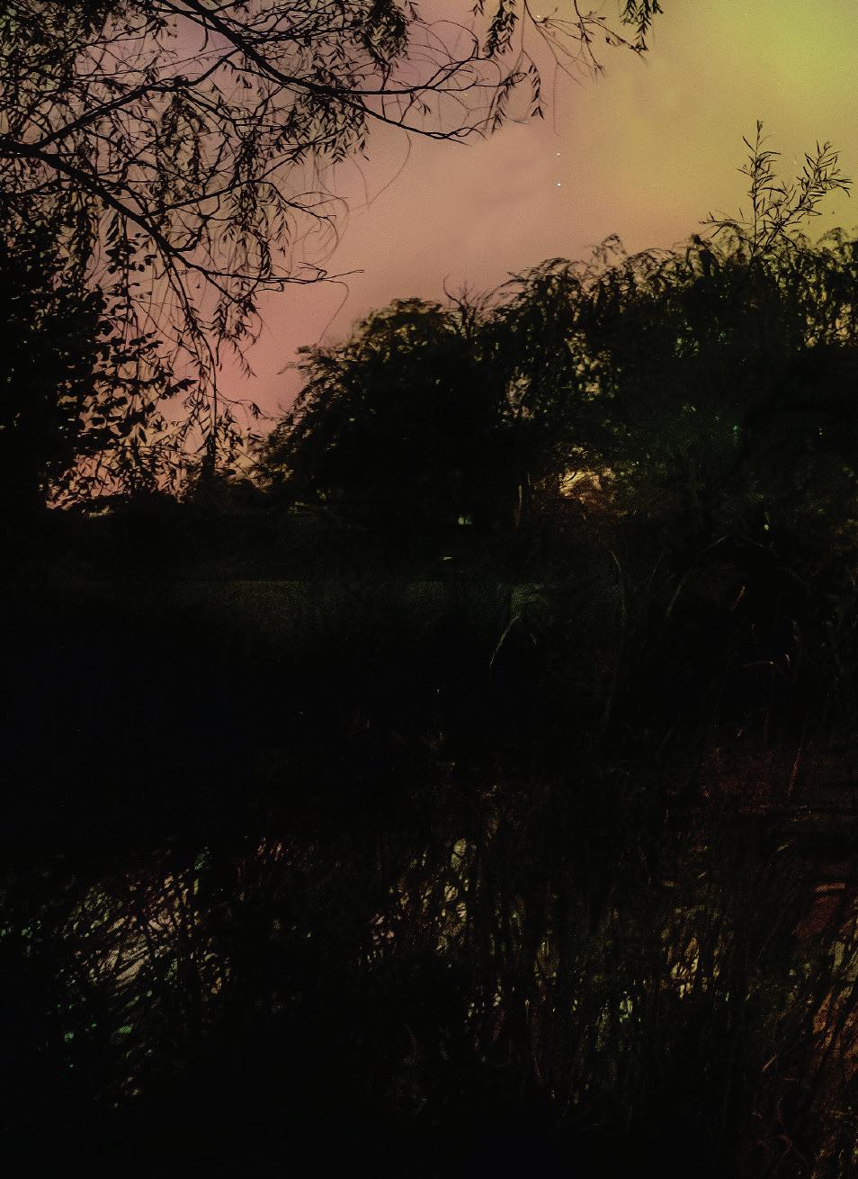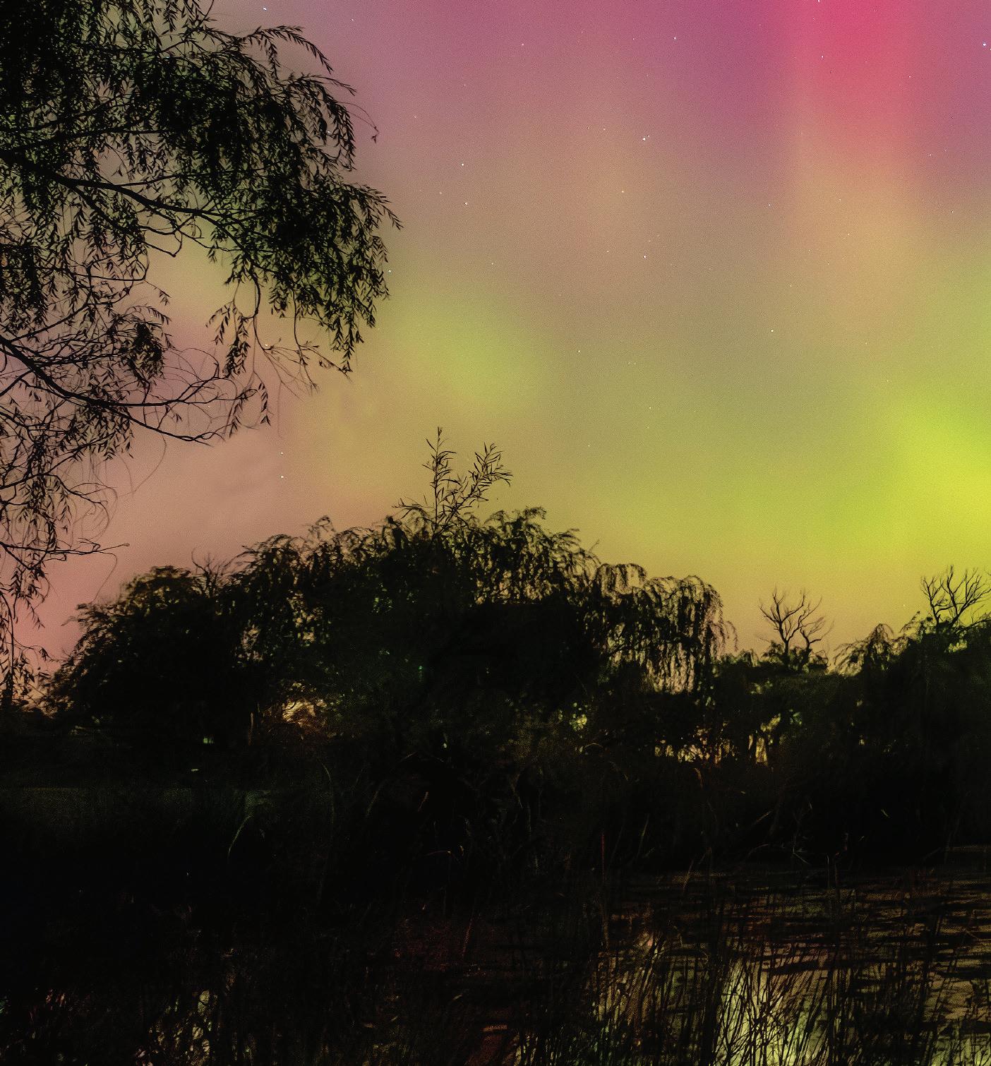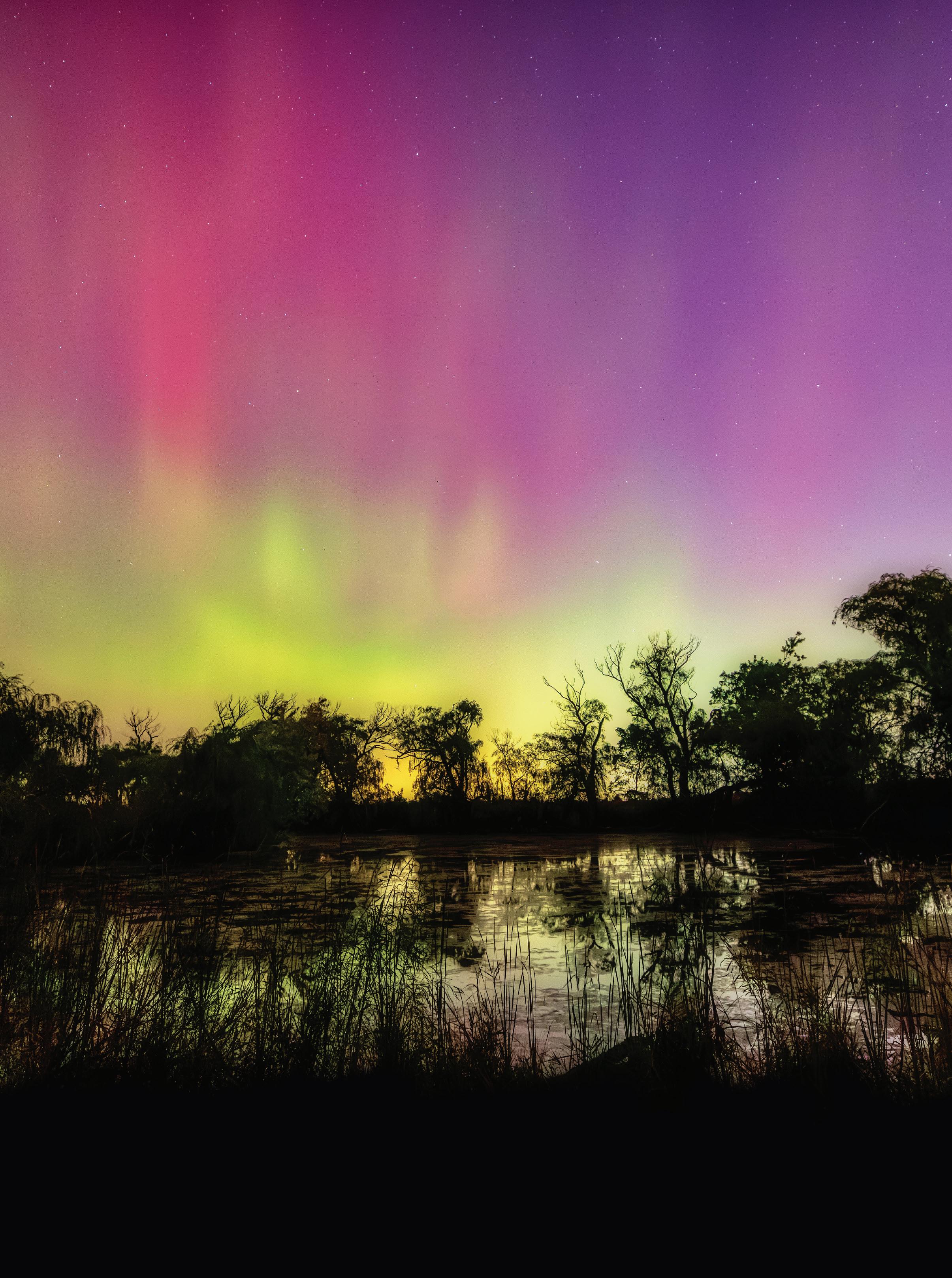 Pink, purple and green swirl together in a breathtaking Northern Lights display at Ethel’s Woods Forest Preserve (Antioch).