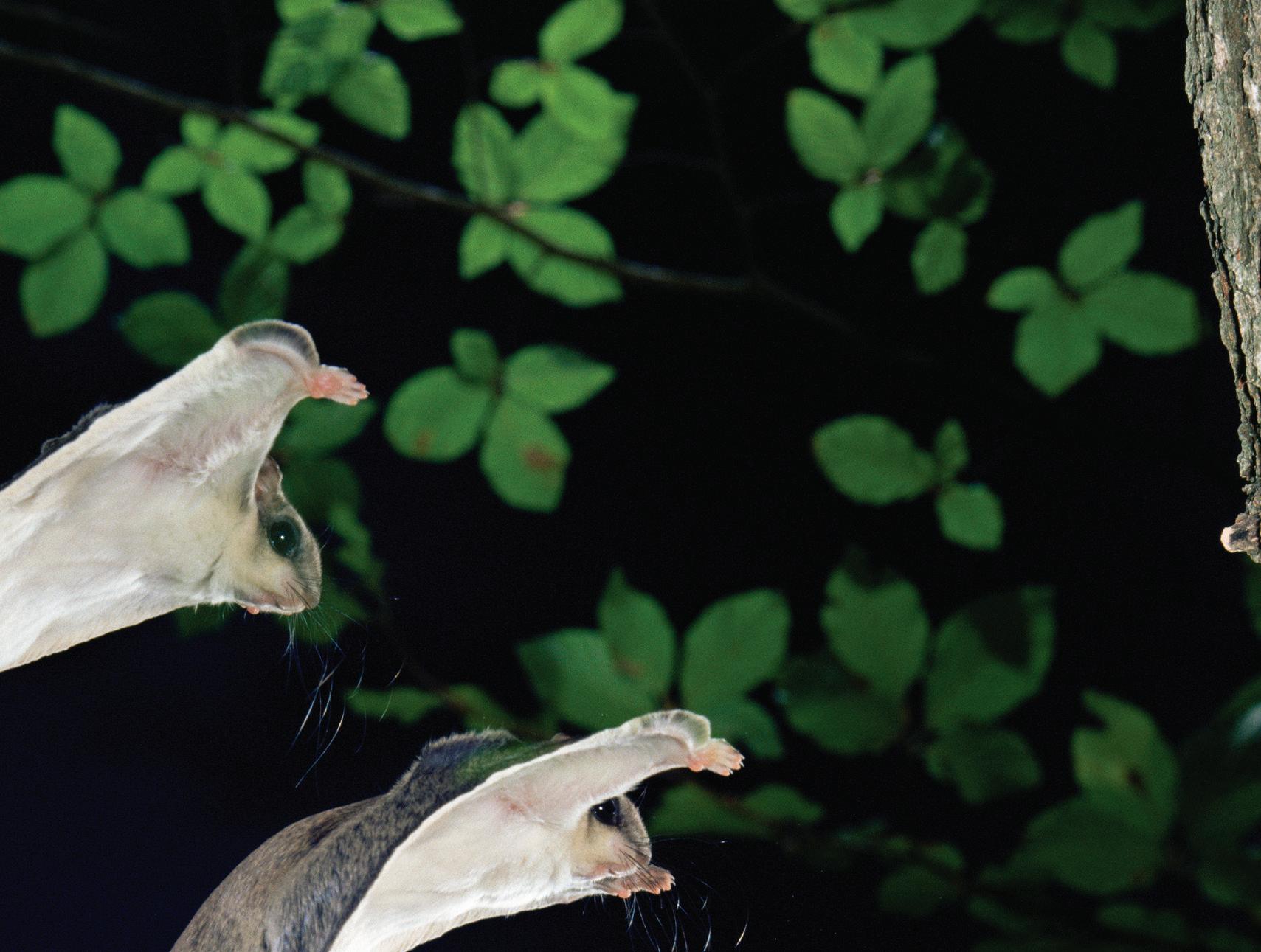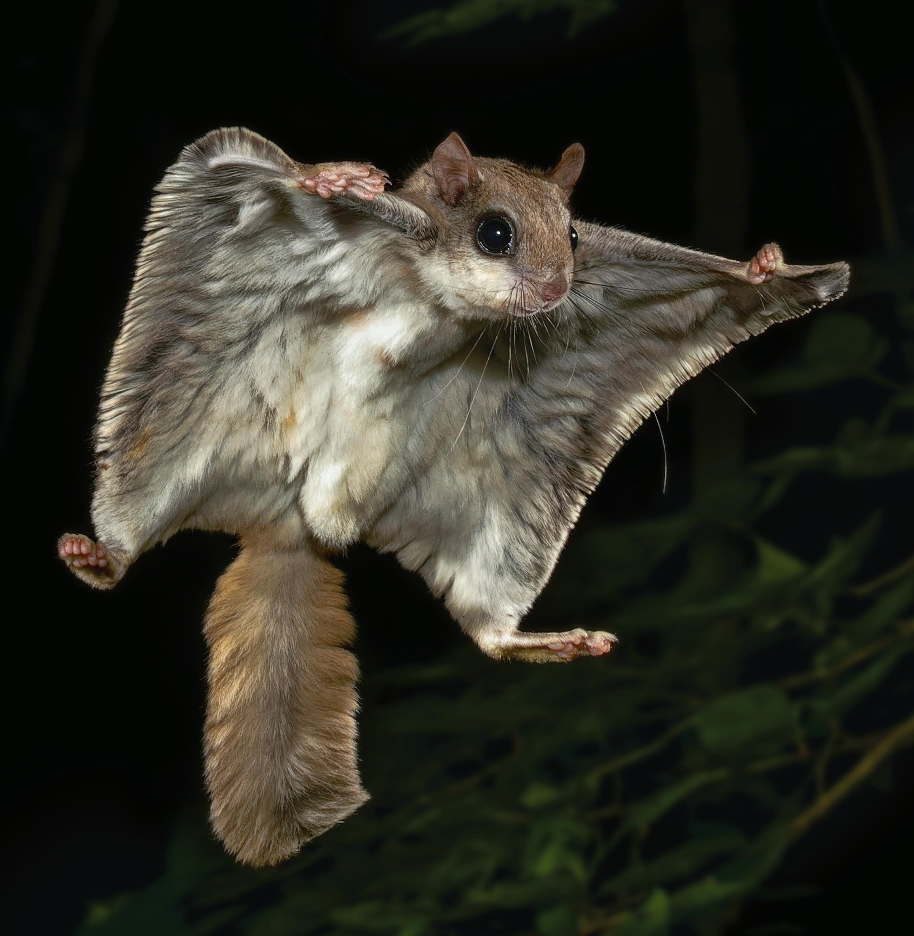 Flying squirrels don’t truly fly. They glide around their 1-acre home ranges using a fold of skin called the patagium that connects their wrists and ankles.