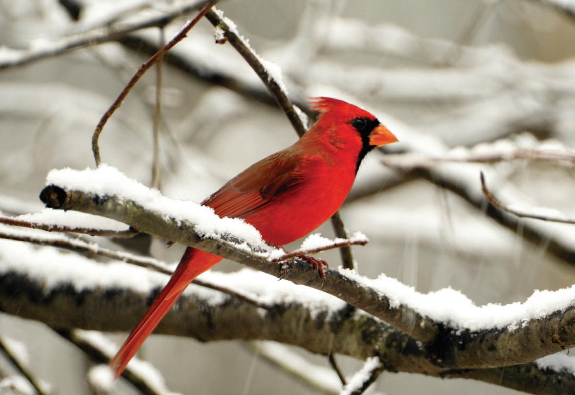Northern cardinals (Cardinalis cardinalis), the Illinois state bird, are permanent residents. Their diet of seeds, fruits and insects helps them find enough food year-round. Like mammals, “cardinals are endothermic, meaning they produce their own body heat,” Vaos said.