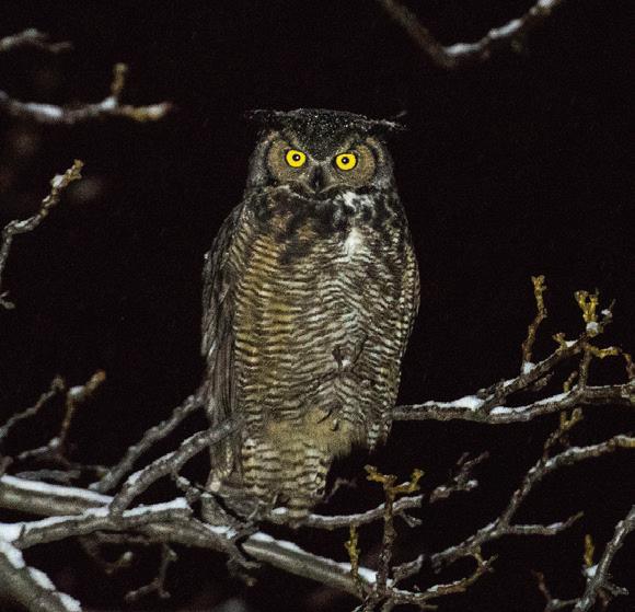 Other animals remain active, including coyotes (Canis latrans), great horned owls (Bubo virginianus) and channel catfish (Ictalurus punctatus). Staying in the area requires wildlife to find food continuously. They may grow extra fur or build special homes to endure the weather.