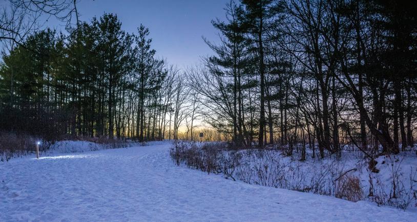 With small solar lights to guide the way, hikers, skiers and snowshoers can get brisk evening exercise at Old School Forest Preserve (Libertyville) and Lakewood Forest Preserve (Wauconda). Though regular preserve hours are 6:30 am to sunset, the illuminated trails and adjacent parking lots remain open until 9 pm daily through Sunday, March 12. Visit LCFPD.org/solar-lit.