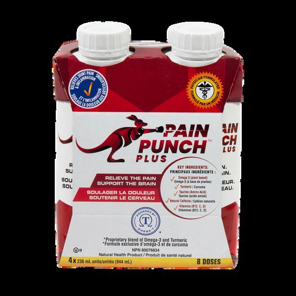 Formulated by a Physician, Pain Punch is a turmeric and omega 3 liquid anti-inflammatory supplement that is effective, fast, and convenient. It also contains essential vitamins, B12, C, and D and amino acids, L-theanine, and taurine It is helpful for those suffering from joint pain and arthritis It is also beneficial for athletes to help reduce muscle pain and inflammation after exercise. In a convenient 236ml bottle, you can now skip the pills and just drink your daily supplements