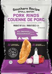 Southern Recipe Small Batch pork rinds are no ordinary pork rinds. They are lightly fried in sunflower oil to enhance the natural flavours and create an addictively crispy texture that you simply can’t find in other brands of pork rinds or salty snacks With 7g of collagen and 0g of trans fat per serving, they can be enjoyed without remorse!
