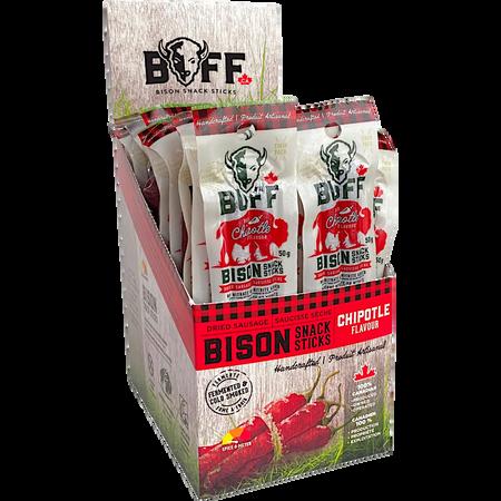 BUFF Artisan Bison Sticks are made with grass-fed bison, naturally preserved and cold-smoked. Each batch is made with a consistent process of fermenting and cold smoking. This ensures a smoky, tangy, and satisfying snack each time.