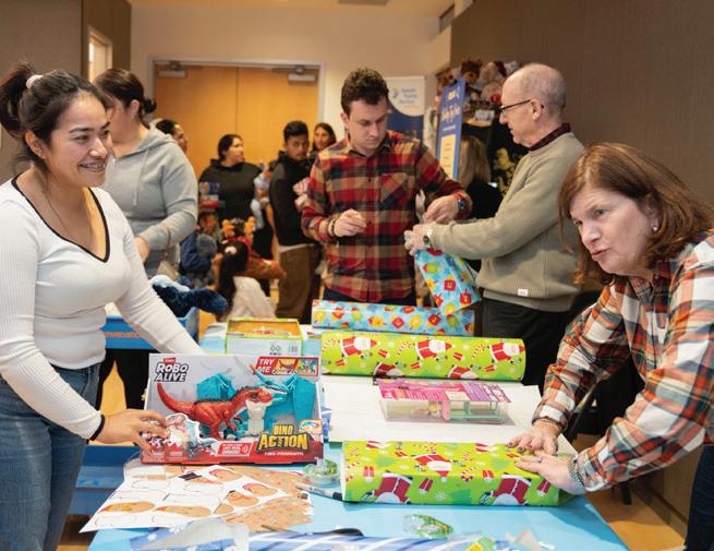 Parents could choose from a wide assortment, such as books, sports equipment, Lego sets, board games, puzzles, board games, infantand baby toys, and more. Geppetto’s Toys President Brian Miller and his family wrapped presents for shoppers. Volunteers also provided childcare and activities on an outside patio.