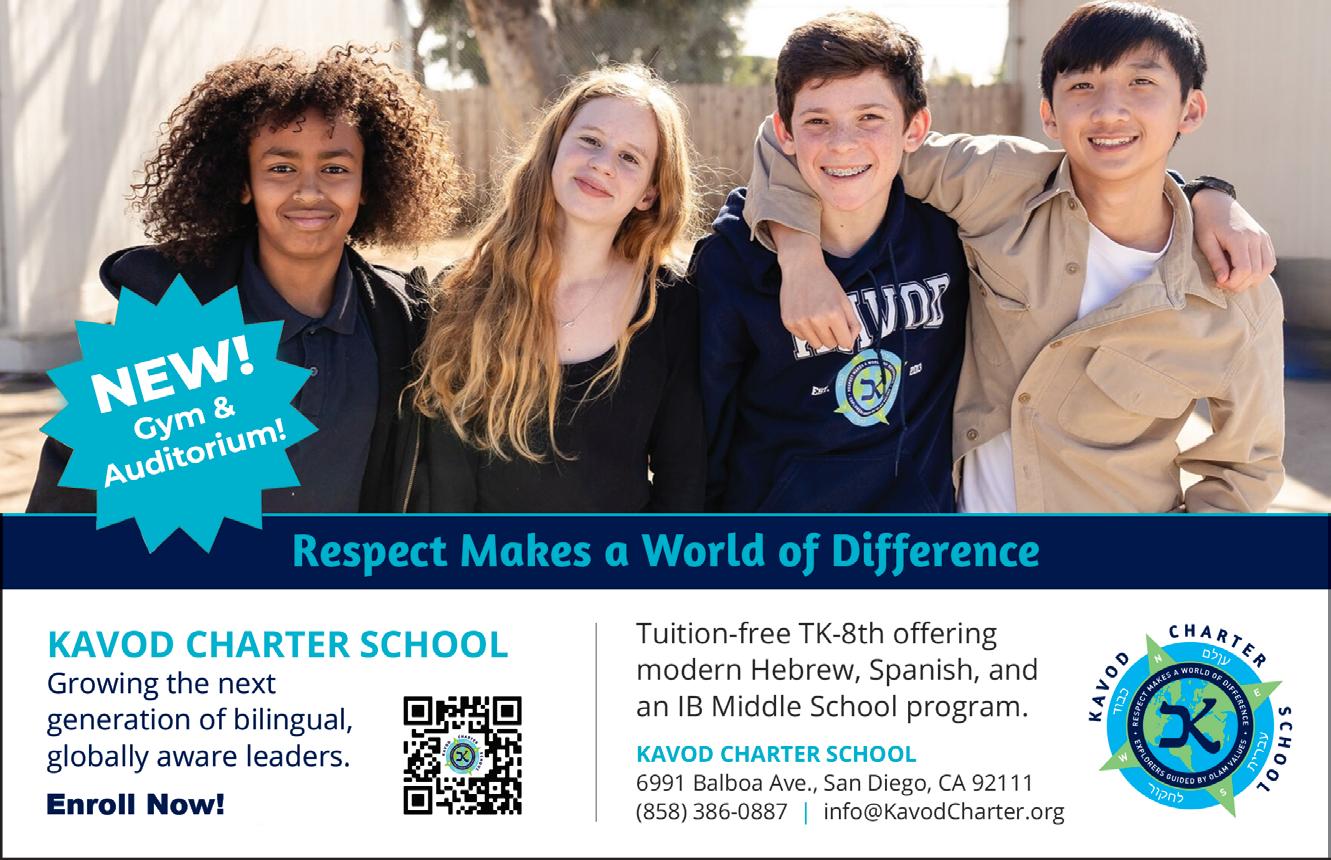 For more information about Kavod Charter School and the dedication celebration, contact Jordyn Theroux at (858) 386-0887 or jordyn. theroux@kavodcharter.org.