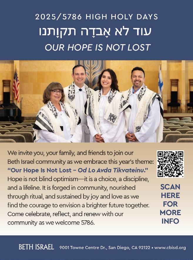 Copyright ©2025 L’Chaim San Diego LLC. All rights reserved. No part of this publication may be reproduced, distributed or transmitted in any form or by any means, including photocopying, recording, or other electronic or mechanical methods, without the prior written permission of the publisher, except in the case of brief quotations embodied in critical reviews and certain other noncommercial uses permitted by copyright law. For permission requests, write to the publisher, addressed “Attention: Permissions Coordinator” to: publisher@lchaimmagazine.com