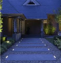 spike uplighters to trees & feature walls evo ground light to footpath